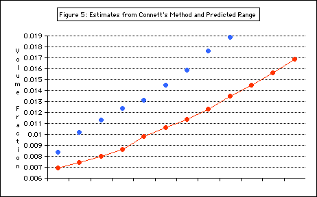 Figure 5 shows the air volume fraction results from the first method as blue dots and from Connetts method as the connected red dots. The results from Connetts method mostly fall within the range predicted by the first method (sh