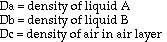 2. The density of the air is much smaller than those of the liquids, such that it is essentially zero for the derivation of the final two equations.
