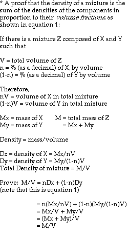 This formula is an extrapolation of the idea that the density of an object is a combination, by volume proportions, of the densities of its components. The mathematical derivation goes as follows (next page):